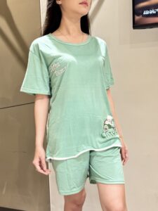 • Mô tả ngắn: Đỉnh cao của phong cách tối giản (Minimalism). Set đồ ngủ tay ngắn quần đùi với điểm nhấn là đường viền màu tương phản chạy dọc thân áo, mang lại diện mạo chỉn chu, sang trọng như đang ở khách sạn 5 sao.