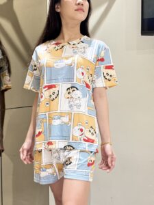 • Mô tả ngắn: Đỉnh cao của phong cách tối giản (Minimalism). Set đồ ngủ tay ngắn quần đùi với điểm nhấn là đường viền màu tương phản chạy dọc thân áo, mang lại diện mạo chỉn chu, sang trọng như đang ở khách sạn 5 sao.